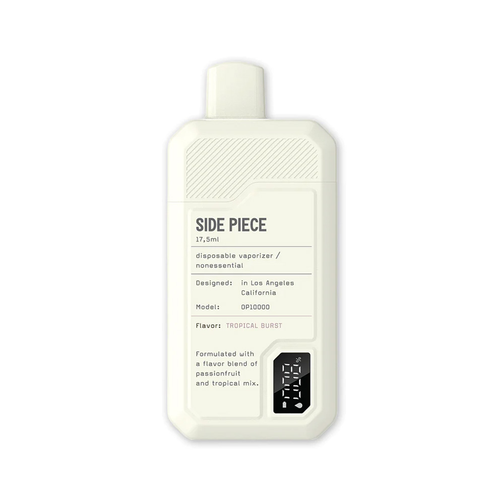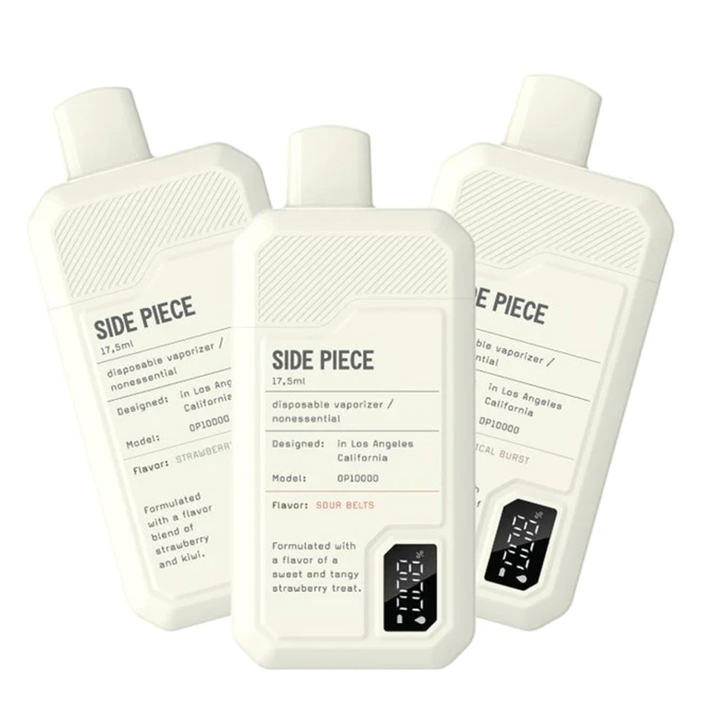 Side Piece is a minamalist vape designed in Los Angeles California that features a new mesh coil design. Prefilled with 17.5ml of their unique flavors and lasts up to 8000 puffs. The Side Piece has a 650mAh rechargeable battery that can be quickly charged via the USB Type-C Charging Port. The Side Piece Vape Device also features a unique battery and e-liquid level display screen.